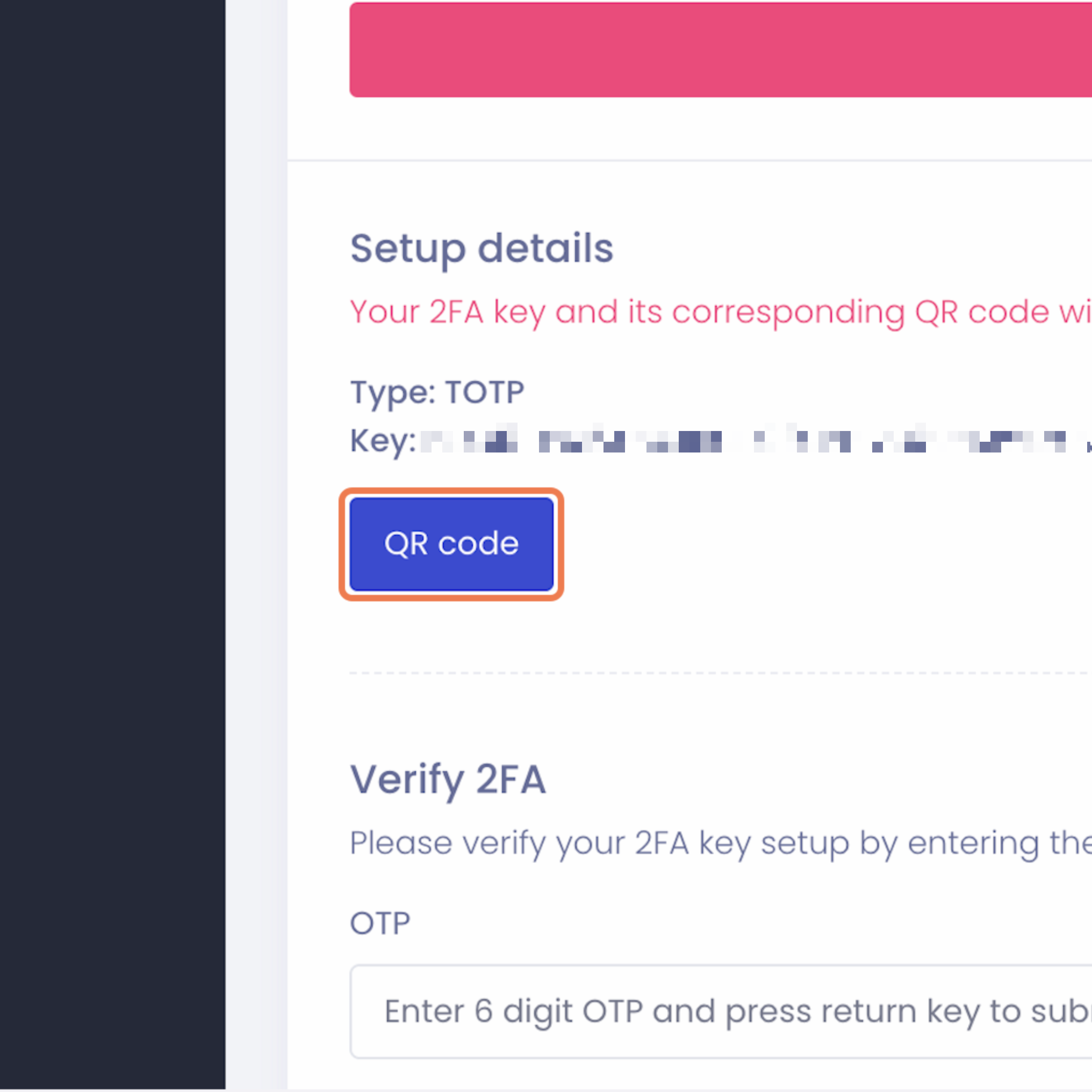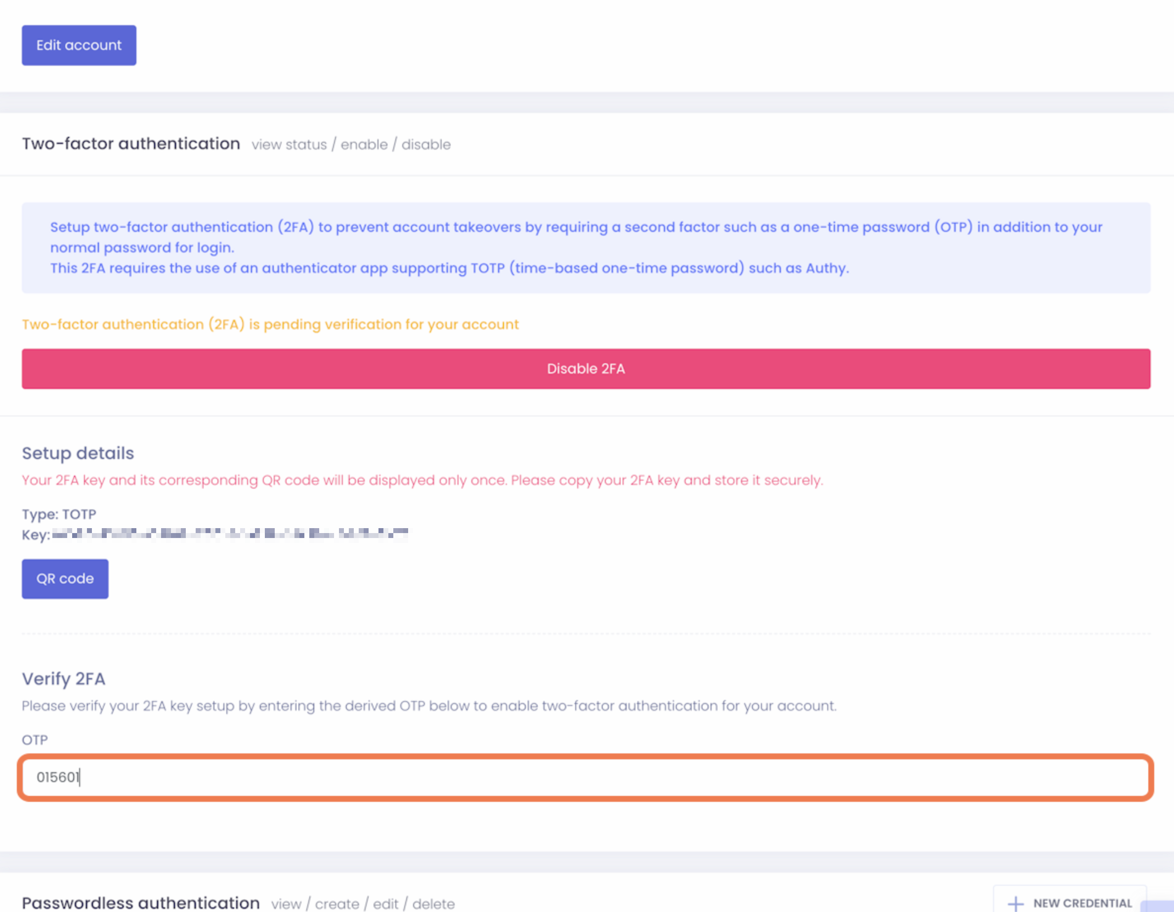 14. Paste the code from your authentication app, into the OTP field and press enter on your keyboard. Then click OK on the successful popup